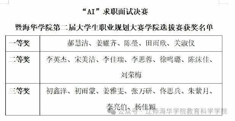 为给学生提供了一个真实模拟求职场景的平台,帮助学生树立职业规划,提升面试竞争力,同时也为了提升同学们的语言表达和逻辑思维能力,从而更好地展示自己,增强自信心。11月13日下午,教育科学学院在博学楼C103教室举办了“AI”求职面试决赛暨第二届职业规划大赛学院选拔赛,出席本次大赛的有教育科学学院副院长于明业、任课教师李萌、崔畅、孙琳、曲科洁、曲晨、郑伊洋、林会琪担任评委老师,2022、2023级全体学生参加。本次大赛特邀将军湖幼儿园园长于宏、金禾幼儿园园长李海燕、海华幼儿园园长汪莹出席此次比赛担任评委老师。